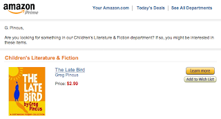 I have to admit this amused me greatly - email from Amazon suggesting that I, G. Pincus, might be interested in Greg Pincus' poetry collection The Late Bird: